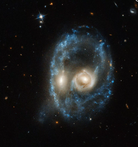 這個星系被稱為 Arp-Madore 2026-424,它位於 7.04 億光年以外。正面碰撞導致產生了異常的環形形狀。歐空局(ESA)表示說: “環狀星系很罕見,只有幾百個存在於我們更大的宇宙社區。” NASA 和 ESA 共同運營哈勃望遠鏡。
