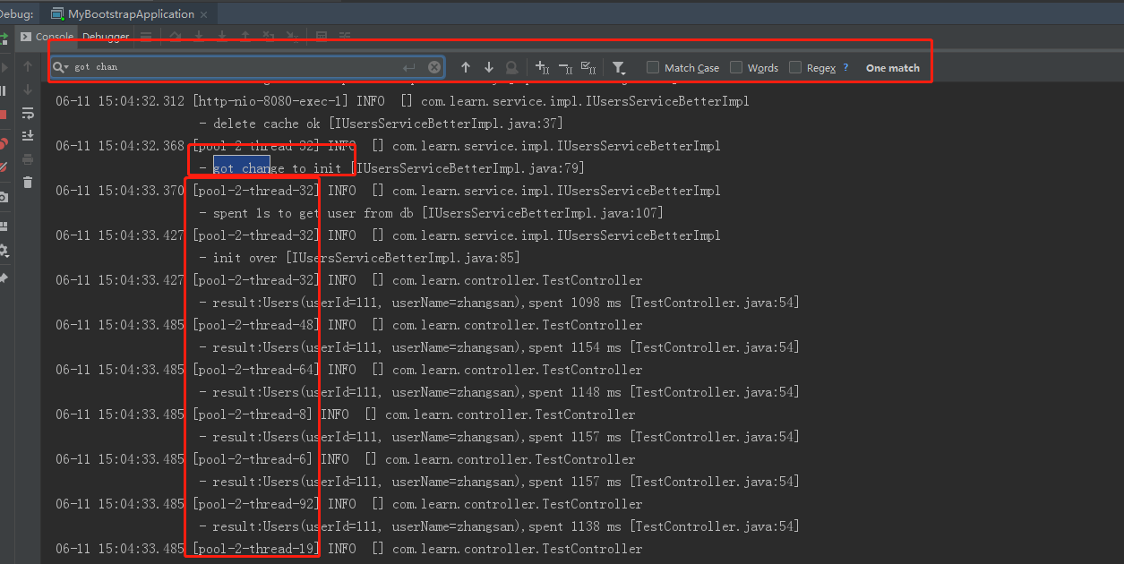 log.info("result:{},spent {} ms", users, System.currentTimeMillis() - start);