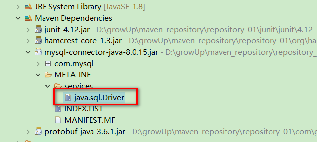 打開mysql的驅動包就可以看到一個java.sql.Driver文件,裏面就是mysql驅動的全路徑名。