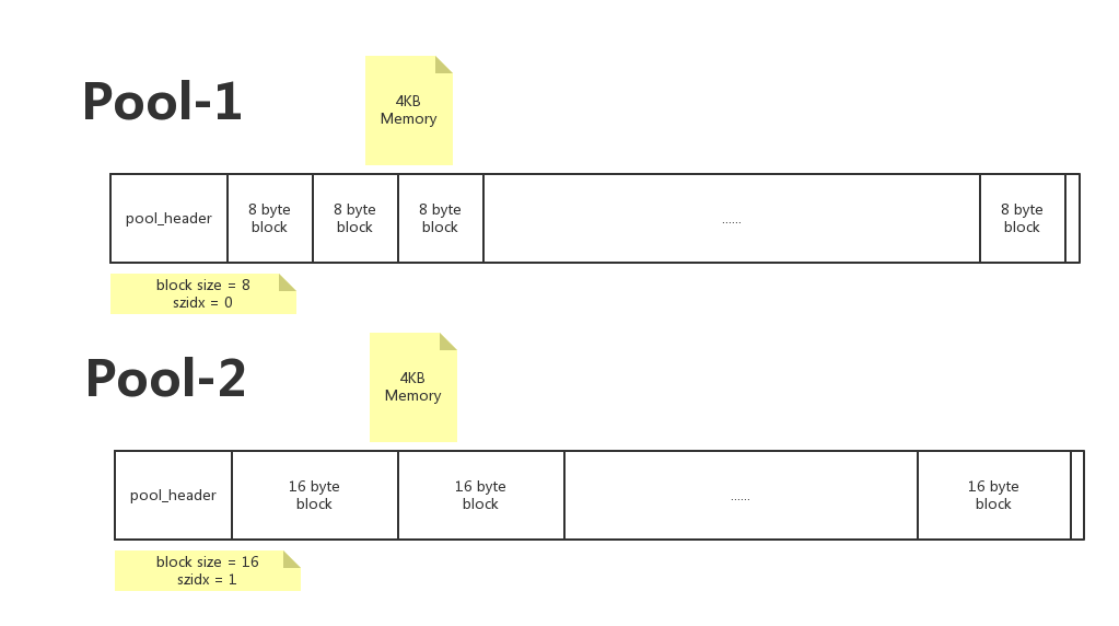 pool的4kB內存 = pool_header + block集合(N多大小一樣的block)
