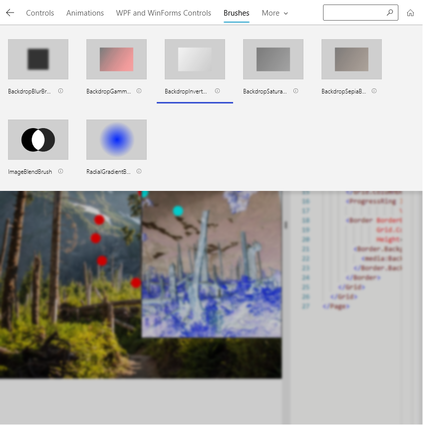 如上圖所示,中已經提了很不少XamlCompositionBrushBase的實現,它們的使用方式已經有很多文章介紹,這裏不一一列舉。